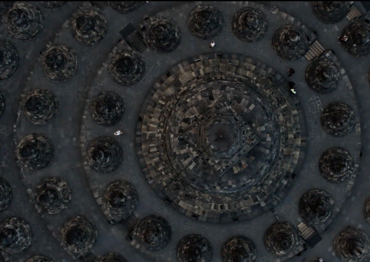 A arial shot of Borobudur Temple - a mandala that holds a hidden map towards our full potential (that's David there on the left).